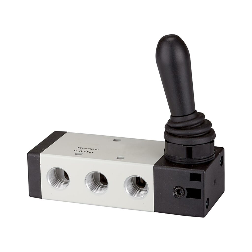5/3-Wegeventil, Handhebelbetätigung »4H«, Mittelstel. geschl., rastend, G 1/8, Betriebsdr. 0-10bar, Temp. -20°C bis 70°C, 750l/min.