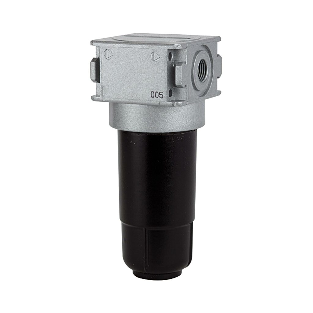 Aktivkohlefilter »multifix-mini« mit Metallbehälter, 0,005 mg/m³, BG 0, G 1/8, PE max. 16 bar, Mediums-Umgebungstemp. max. 60 °C. Zur Geruchsfilterung der Druckluft. Von der Aktivkohle werden die in der Druckluft enthaltenen Öldampfmoleküle absorbiert. Aktivkohlepartikel gelangen aufgrund einer separaten Filtertresse nicht in den Luftstrom.