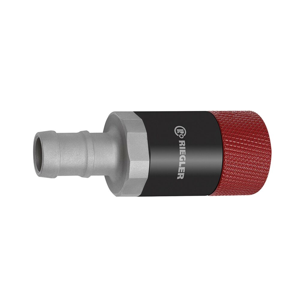 Dreh-Sicherheitskupplung NW 11, ISO 6150 C, Stahl, Tülle LW 13, 2-stufig, Betriebsdruck max. 25 bar, Temp. -20 °C bis 100 °C. Hochwertige, robuste und langlebige, mit einer Hand bedienbare Dreh-Sicherheitskupplung. Durch Eindrücken des Stecknippels, bis dieser hörbar rastet, wird eine sichere Verbindung hergestellt. Das Entkuppeln erfolgt über eine Linksdrehung der Hülse. Hierbei wird der anstehende Druck in der Kupplung und in der Leitung entlüftet, jedoch wird der Stecknippel über eine Sicherheitsklinke nicht komplett freigegeben. Erst nach einer Rechtsdrehung der Hülse kann der Stecknippel herausgezogen werden. Diese Kupplung entspricht dem ISO-Standard DIN EN ISO 4414, EN 983. Diese Sicherheitskupplung eignet sich nicht für die direkte Montage an pulsierendem Werkzeug. Wir empfehlen die Verwendung unserer Vibrationsdämpfer, gemäß ISO 6150, § 7.1. Einsatzgebiete: Pneumatik, Maschinen- und Anlagenbau, Fertigungsindustrie, Bergbau.