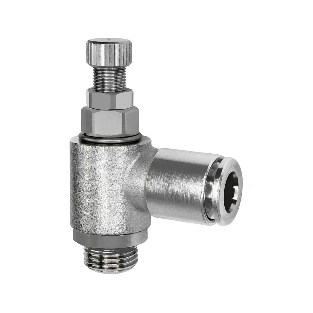 Drosselventil, beidseitig (B), M5, Steckverbindung 4, drehbar, 0 – 10 bar, -20 °C bis 80 °C, MS vern.. Zur Drosselung von Durchflussmengen und zur Regulierung der Kolbengeschwindigkeit von Zylindern. Kleine Baumaße, ideal bei engen Platzverhältnissen. Zum direkten Einschrauben am Ventil oder Zylinder. Die Varianten in Hohlschraubenbauweise sind während der Montage drehbar und nach dem Anziehen starr. Die Varianten mit drehbarer Steckverbindung können auch nach der Montage frei positioniert werden. Die eingesetzten Dichtungen und Schmierstoffe sind silikonfrei.