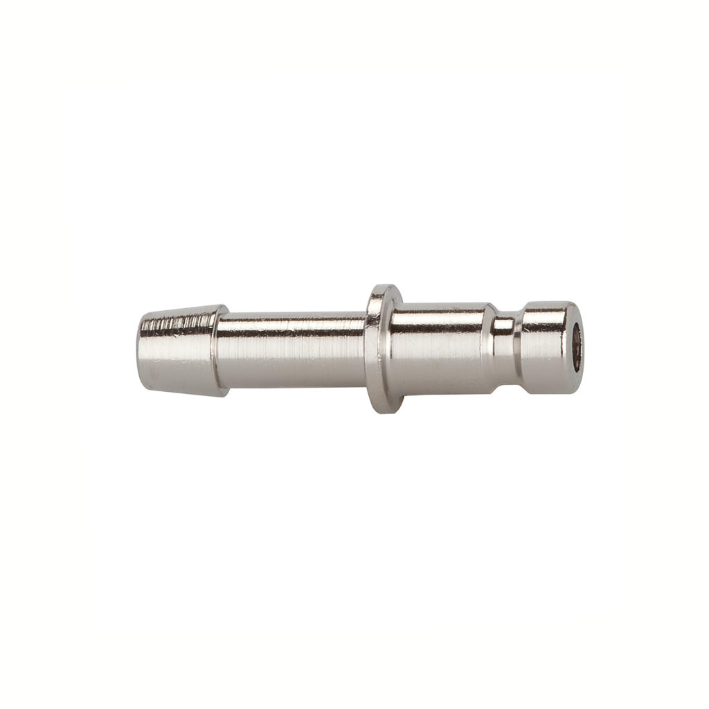 Einstecktülle für Kuppl. NW 2,7, Messing vernickelt, Tülle LW 3, Betriebsdruck 0 – 35 bar, Mediums-/Umgebungstemp. -20°C bis 100°C.