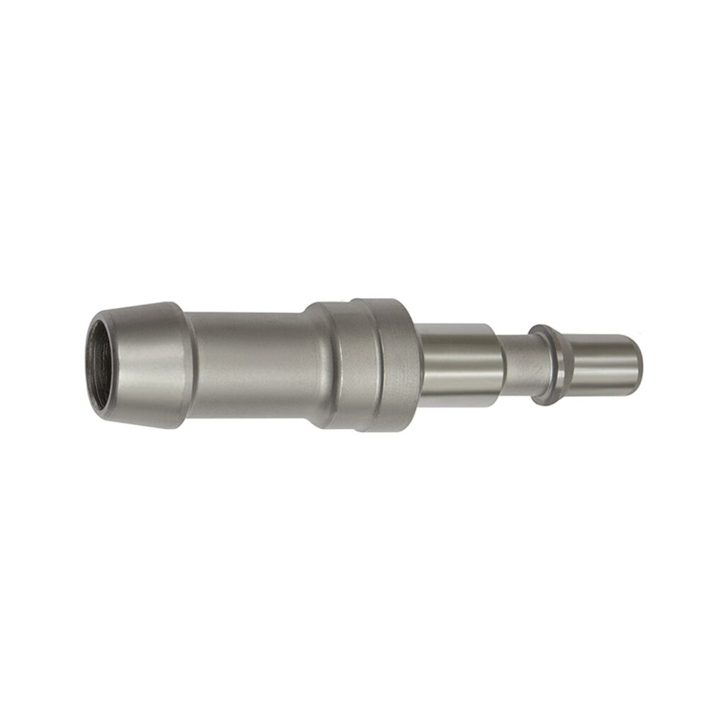 Einstecktülle für Druckknopf-Sicherheitskupplungen NW 6, ISO 6150 C, Edelstahl, Tülle LW 6, max. 12 bar, Temp. -20 °C bis 200 °C.