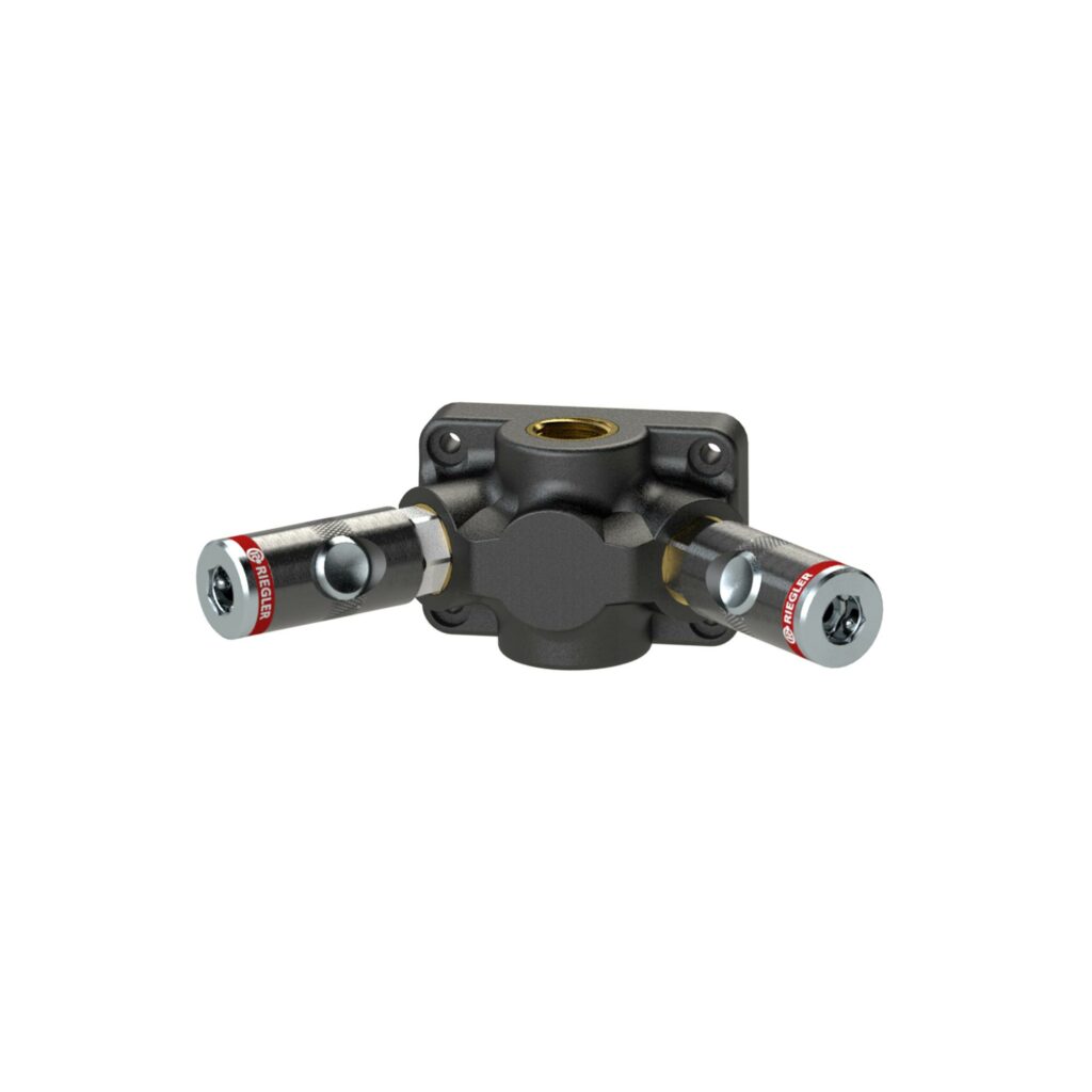 Endverteilerdose, 2 Sicherheitskuppl.NW 7,4,EingangG1/2, Betriebsdr.max. 12bar, Temp.Luft -10°C bis 50°C, Temp.Wasser 1°C bis 50°C. 2-fach-Verteilerdosen aus hochfestem, glasfaserverstärkten Kunststoff (PA6 GF 30) mit großer Anwendungsvielfalt. Alle Verteilerdosen haben einen robusten Messing-Gewindeeinsatz, der durch seine Formgebung gegen Verdrehung und gegen axiale Verschiebung gesichert ist. Die Bohrbildmaße sind bei allen Verteilerdosen identisch, damit wird ein einfacher und flexibler Austausch gewährleistet. Achtung: Beachten Sie, dass die Verteilerdosen nicht in Gefahrenbereichen installiert werden sollten. Gefahrenbereiche stellen z.B. Transportwege, Fluchtwege etc. dar.