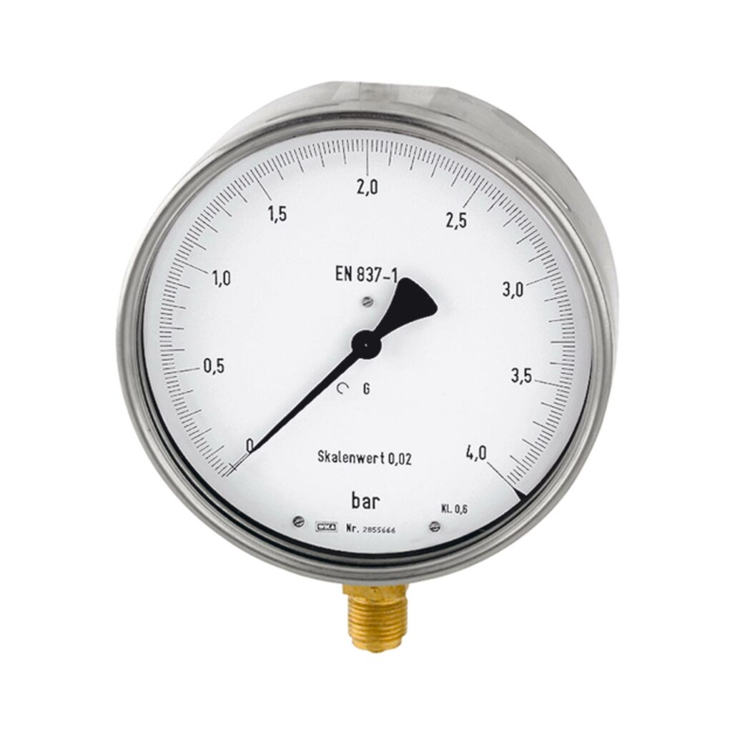 Feinmessmanometer, Anschluss radial unten, G 1/2, Typ 312.20, Güteklasse 0,6, Skaleneinteil. 0,005, Messber. -1 / 0,0 bar, Ø 160. Rohrfedermanometer zur Präzisionsmessung. Geeignet für gasförmige, flüssige, nicht hochviskose und nicht kristallisierende Messstoffe, die Kupferlegierungen nicht angreifen.