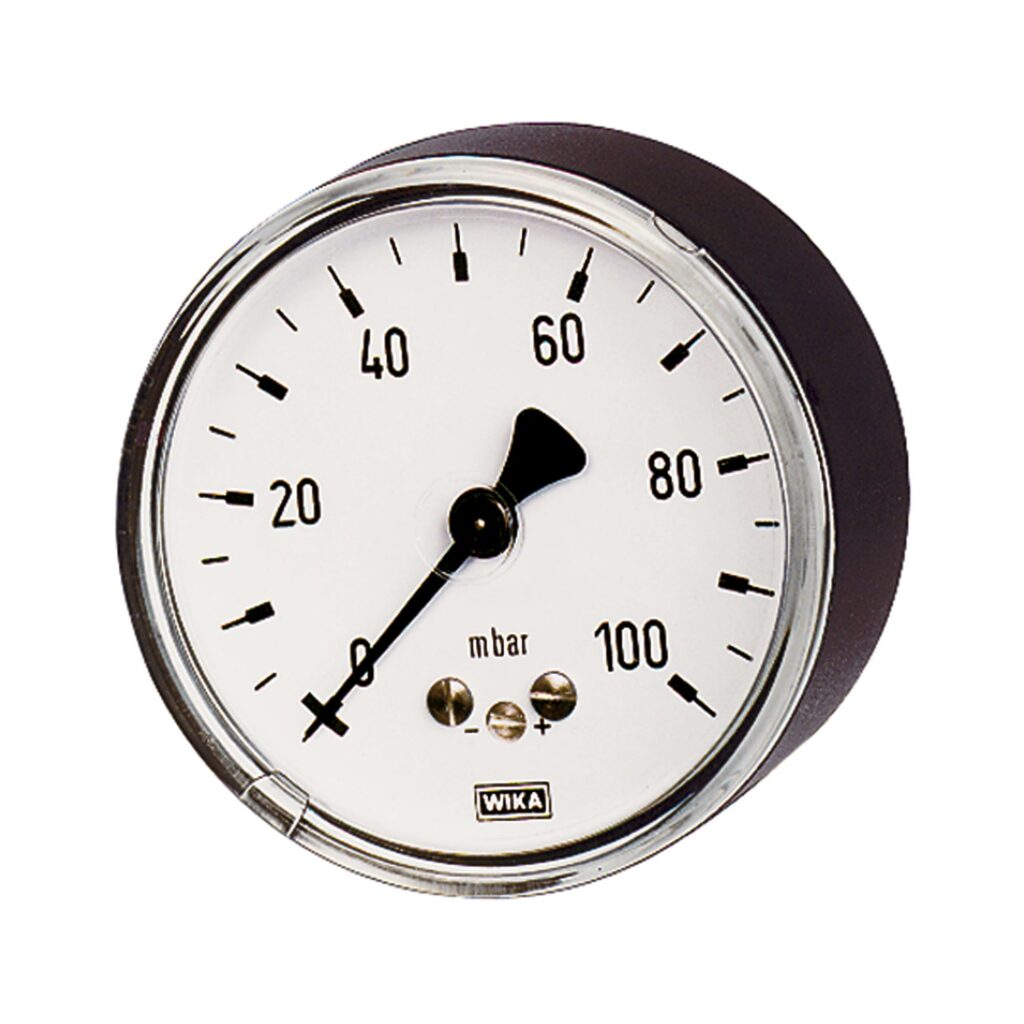 Kapselfedermanometer, Gehäuse Stahl, Anschluss hinten zentrisch, G 1/4, Typ 611.10, Güteklasse 1,6, Messber. 0 – 40 mbar, Ø 63. Mit Nullpunktkorrektur.