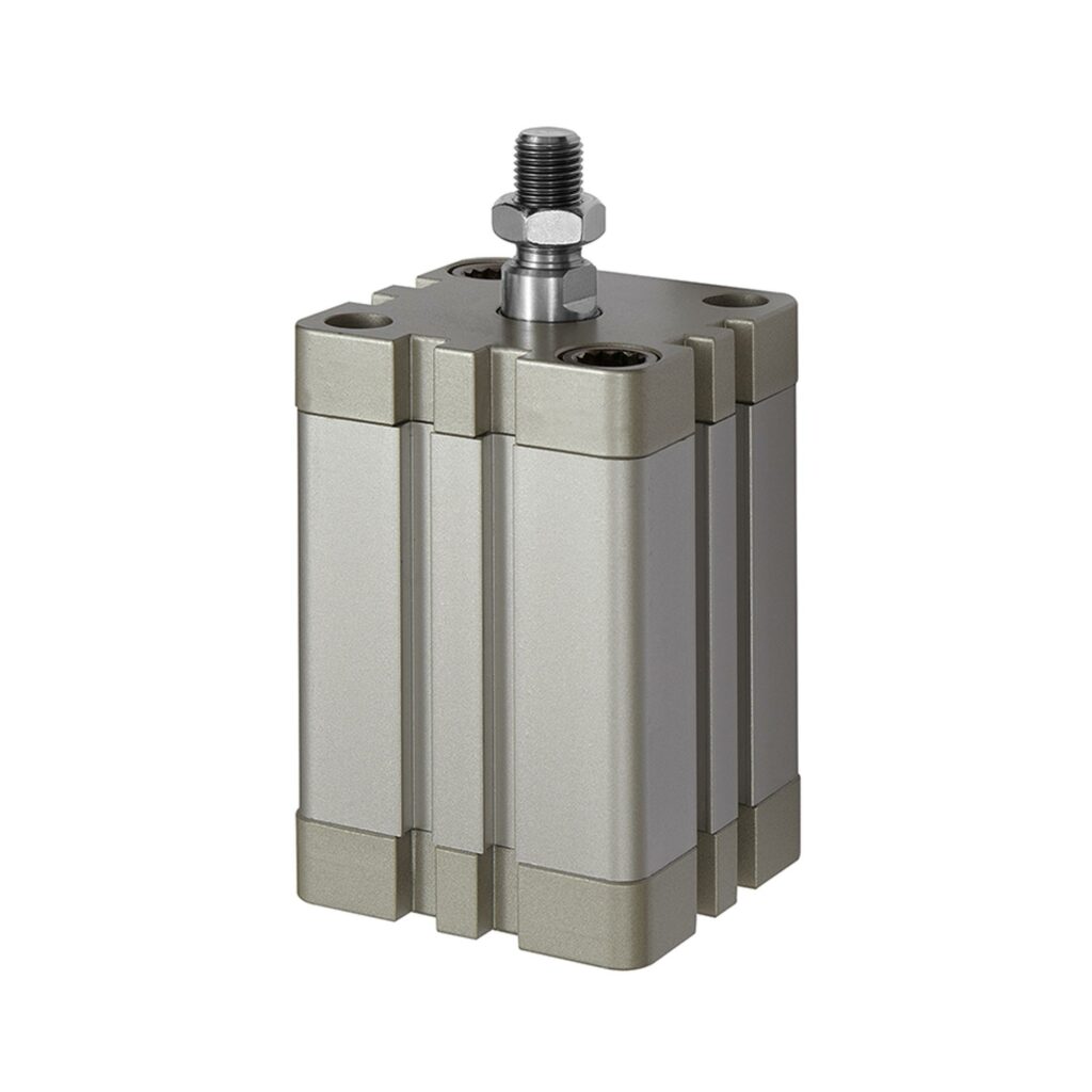 Kompaktzylinder, ISO 21287, einfachw., AG, eingef., Magnet, Kolben-Ø 12, Hub 5, M5, Arbeitsdr. max. 10 bar, Temp. -20 °C bis 70 °C. Baureihe nach ISO 21287 in besonders kurz bauender, platzsparender Ausführung. In der angebotenen Standardausführung mit Magnetkolben. Kolbenstange wahlweise mit Innen- oder Außengewinde. Für gefilterte und ungeölte oder geölte Druckluft geeignet. Bei Verwendung von geölter Druckluft auf kontinuierliche Ölung achten.