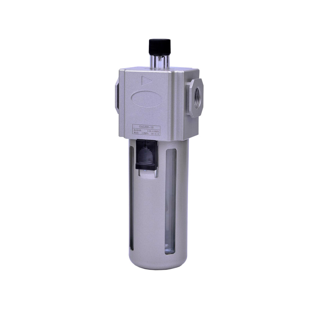 Nebelöler »GA«, mit PC-Behälter, Schutzkorb und Haltewinkel, BG 300, G 1/4, Eingangsdruck max. 10 bar, Arbeitsdruck 0,5 – 9 bar. Proportionalöler, Öleinfüllung unter Druck ist möglich.