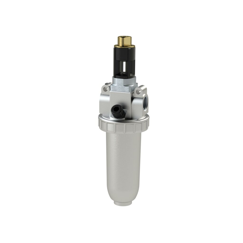 Nebelöler »Standard« mit Metallbehälter und Tropfaufsatz Metall, BG 1, G 1/4, PE max. 25 bar, Med.-Umgebungstemp. max. 60 °C. Proportionalöler, Öleinfüllung unter Druck möglich.