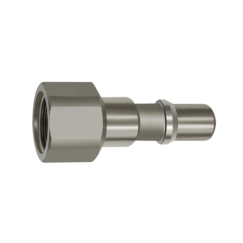 Nippel für Druckknopf-Sicherheitskupplungen NW 11, ISO 6150 C, Edelstahl, G 3/8 IG, max. 16 bar, Temp. -20 °C bis 200 °C.