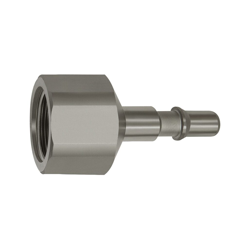 Nippel für Druckknopf-Sicherheitskupplungen NW 6, ISO 6150 C, Edelstahl, G 1/8 IG, max. 12 bar, Temp. -20 °C bis 200 °C.