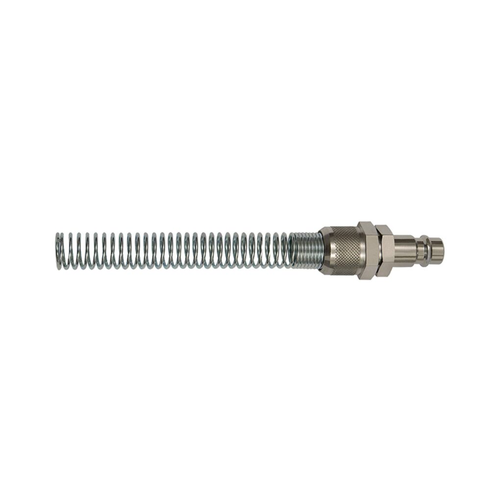 Nippel NW 7,2-7,8, Stahl verz., für Schlauch 6×4 mit Knickschutzfeder, Betriebsdr. 0-35bar, Mediums-/Umgeb.temp. -20°C bis 100°C.