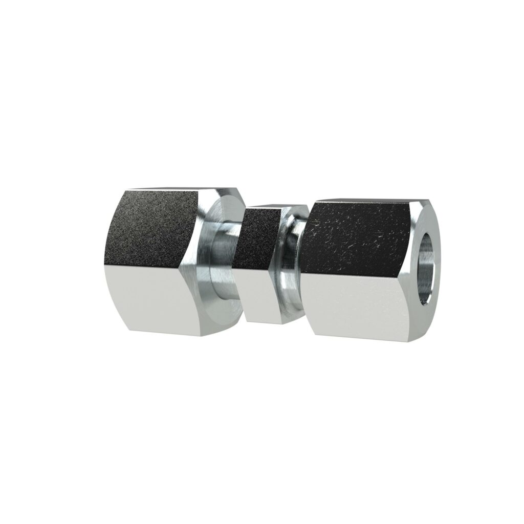Reduzierung, Rohr-Außen-Ø Muffen 8/6 mm, PN max. 630 bar, SW1 17, SW2 17, SW3 19, Stahl verzinkt. Reduzierung, schwere Ausführung
