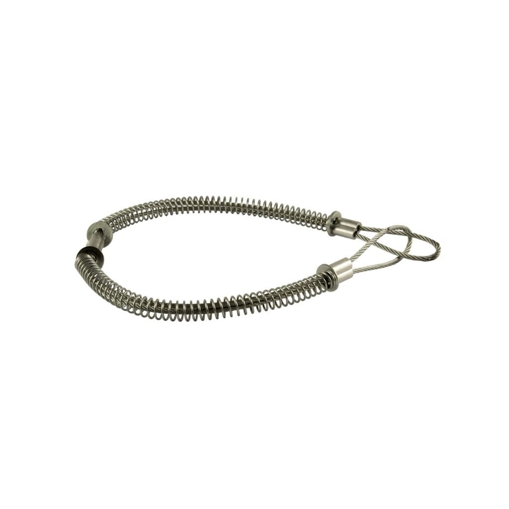 Schlauchsicherungskabel, für Schlauch-Außen-Ø 13 – 35 mm, Stahl verzinkt, Länge ca. 516 mm. Zum Schutz vor dem «peitschenden» Schlauchende bei unbeabsichtigtem Lösen der Schlauchverbindung unter Druck.