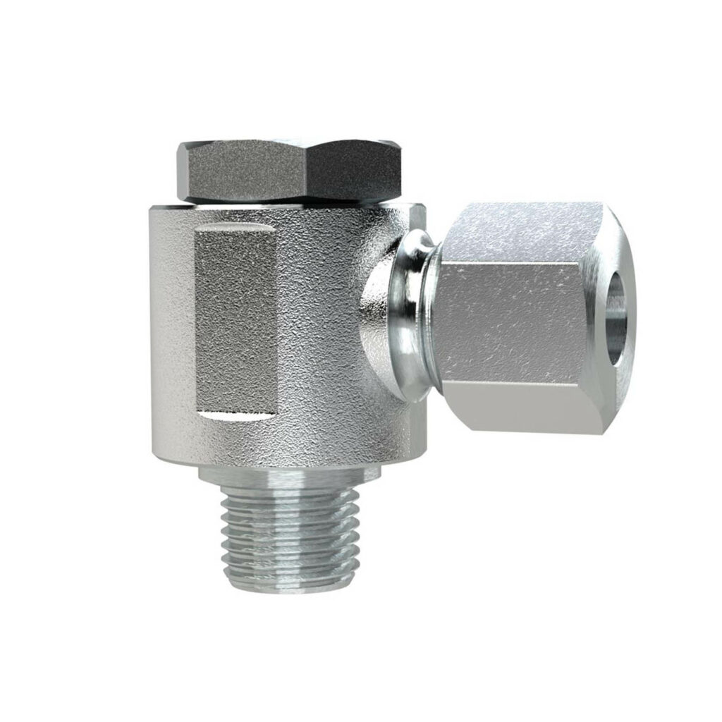 Schwenkbare Winkel-Verschraubung, G 1/4 a., Rohr-Außen-Ø 6 mm, SW1 17, SW2 19, Betriebsdruck max. 400 bar, Stahl verzinkt. Schwenkbare Winkel-Verschraubung, Außengewinde zylindrisch mit O-Ring, schwere Ausführung