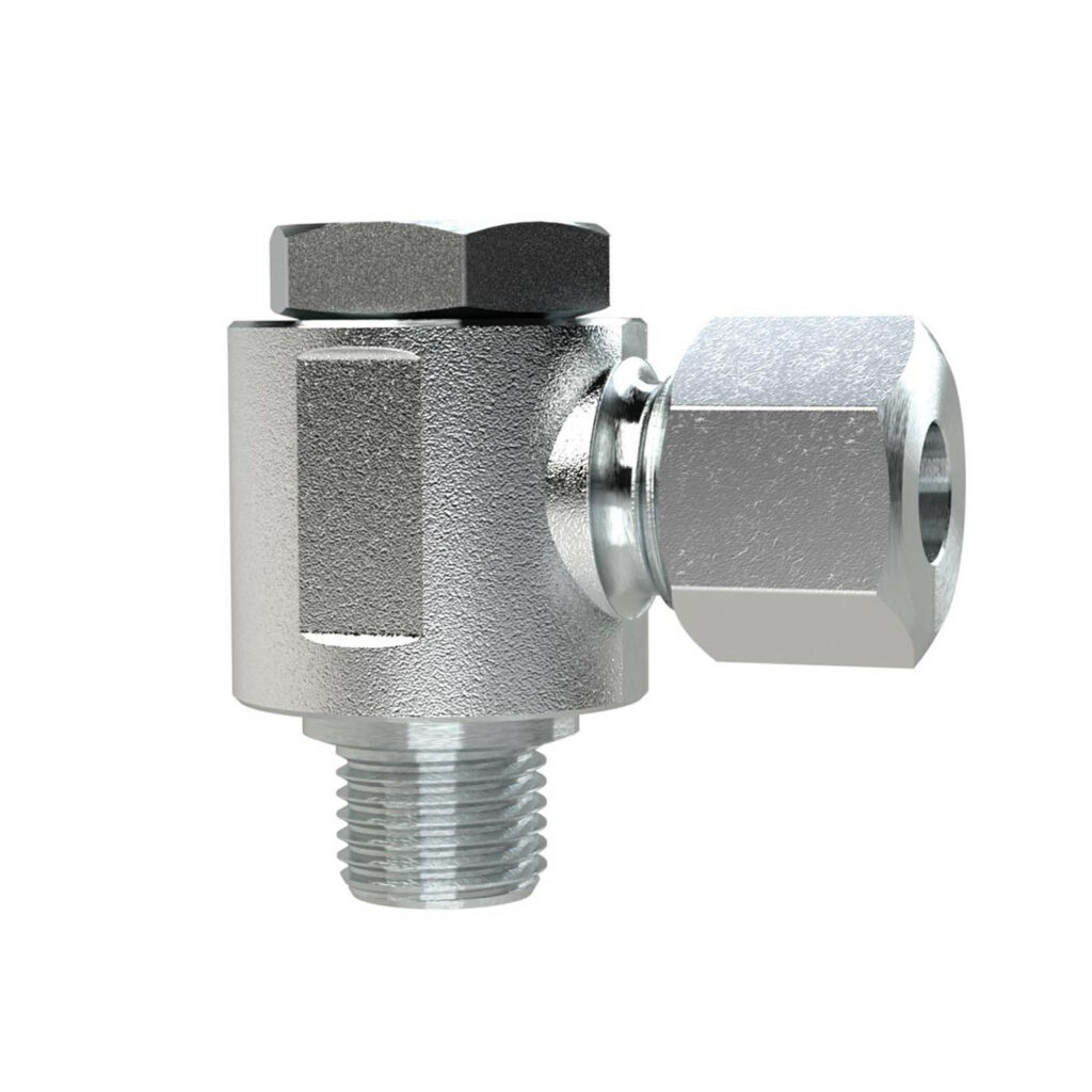 Schwenkbare Winkel-Verschraubung, G 1/8 a., Rohr-Außen-Ø 4 mm, SW1 10, SW2 14, Betriebsdruck max. 100 bar, Stahl verzinkt. Schwenkbare Winkel-Verschraubung, Außengewinde zylindrisch mit O-Ring, sehr leichte Ausführung