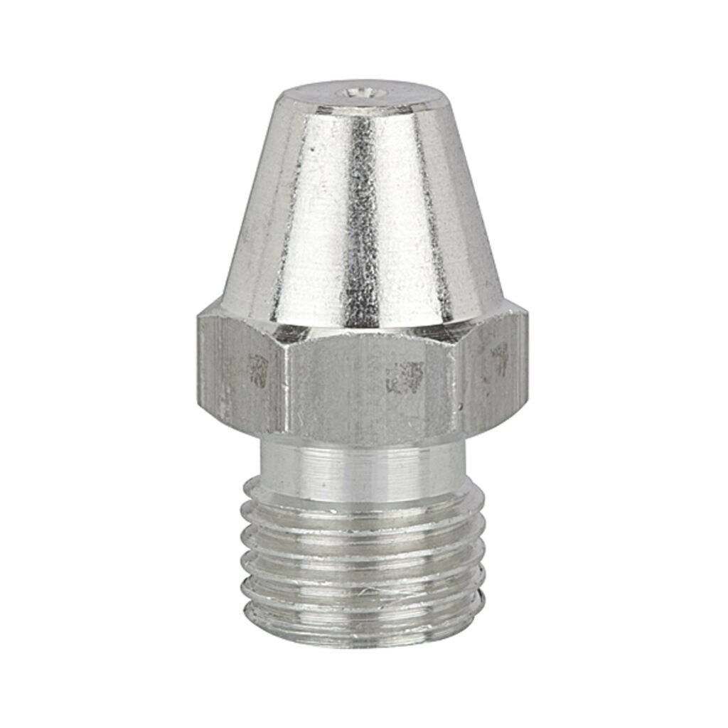Standarddüse, Bohrung Ø 1,5 mm, Anschluss M12x1,25, für alle Blaspistolen aus Aluminium / Aluminium-Druckguss vernickelt. Passend für alle Blaspistolen aus Aluminium und Aluminium-Druckguss vernickelt.