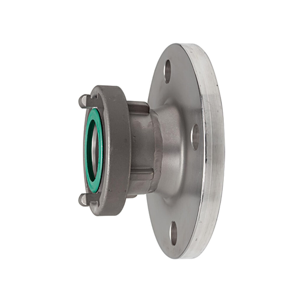 Storz-Übergangsstück, ES V4A, Storz-Größe 25-D, Knaggenabstand 31 mm, Flansch DN 25, PN max. 16 bar, Betriebstemp. -15°C bis 200°C. Qualitativ hochwertige Baureihe aus V4A. Zur schnellen und problemlosen Verbindung von Schlauchleitungen. Leichte Handhabung und dichtungsschonendes Verbinden der beiden Kupplungselemente. Einsatzbereiche: Anlagenbau, Schiffsbau, Chemische Industrie.