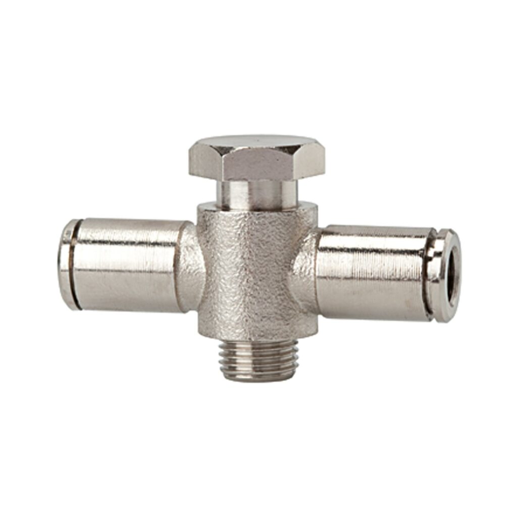 T-Steckverschraubung »metallica«, drehbar, G1/8 a., Schlauch-Außen-Ø 4mm, Arbeitsdruck max. 16bar, Messing vern., Außen 6-kant . Schnellsteckverbindungen komplett aus Messing vernickelt. Die Teile mit zylindrischem Gewinde sind mit einem FKM-O-Ring ausgestattet. Die konischen Gewinde sind mit der Dispersion preCOTE 5 beschichtet, so dass alle Verbindungen dieser Serie auch bei hohen Temperaturen eingesetzt werden können (Medium Druckluft).