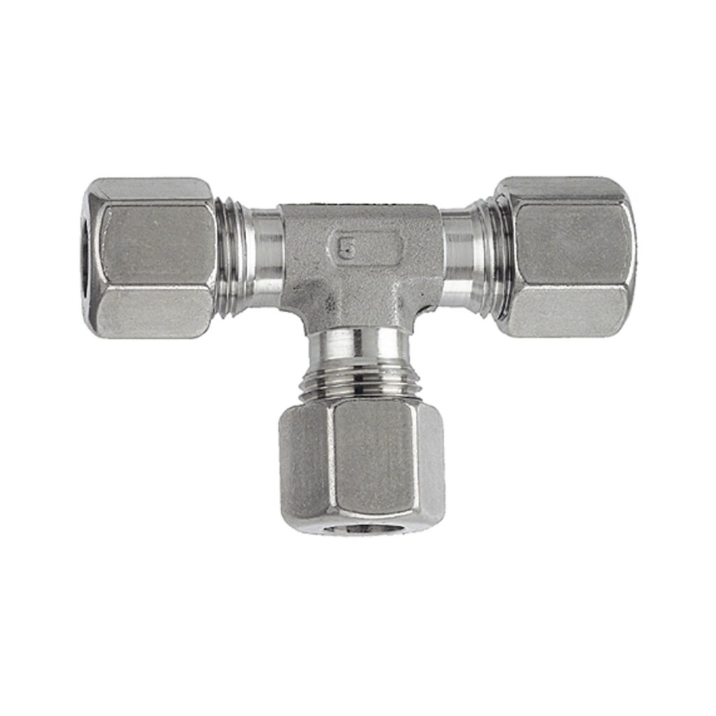 T-Verschraubung, Rohr-Außen-Ø 6 mm, PN max. 100 bar, Edelstahl 1.4571.