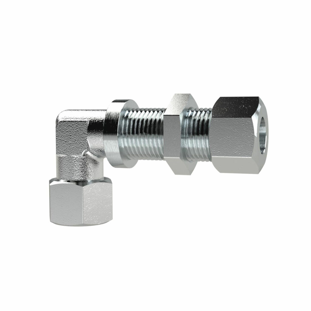 Winkel-Schottverschraubung, Rohr-Außen-Ø 6 mm, PN max. 630 bar, SW1 17, SW2 19, SW3 12, Stahl verzinkt. Winkel-Schottverschraubung, schwere Ausführung